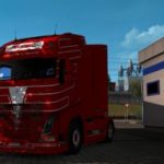 Vogel red skin for Volvo by Ohaha (maintened by Pendragon) with lightbox, scs ownable curtain trailer and ownable Ekeri trailer: mods needed: Ekeri trailer by Kast. Thanks to SR MENDES for curtain trailer.